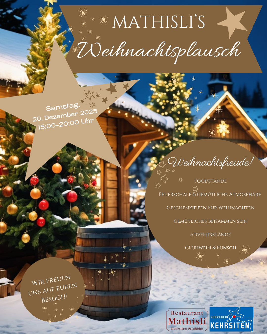 Eintreffen 17.00 Uhr, Samichlaus-Besuch 18.00 Uhr im Mathisli Garten.