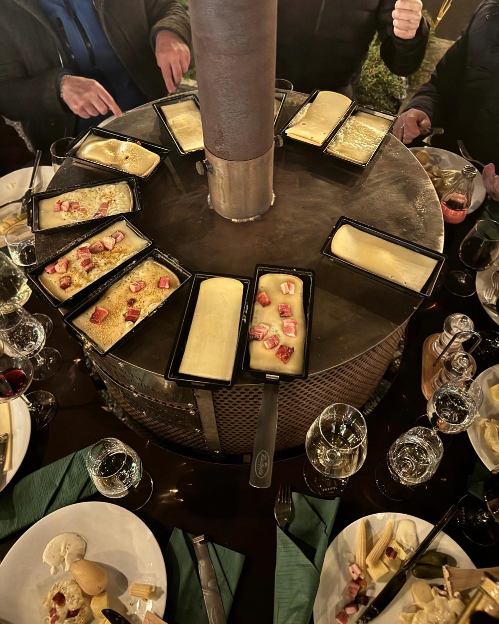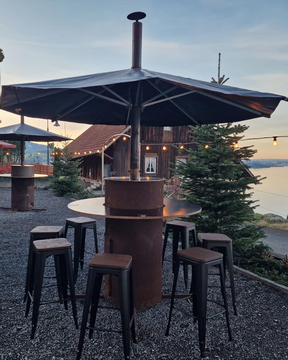 Die 360‑Grad‑Heiz- und Grillstation vereint das Knistern eines Kaminfeuers mit der Faszination einer offenen Küche. Direkt am Firetower bereiten wir Köstlichkeiten wie beispielsweise Raclette frisch zu. Ob im kleinen Kreis oder bei grösseren Events – die Firetower schaffen eine einzigartige Atmosphäre voller Wärme und Genuss. Dank der wetterfesten 9‑Meter‑Überdachung geniessen Sie das Outdoor-Erlebnis bei jedem Wetter. Perfekt für Firmenanlässe, Familienfeiern oder gemütliche Winterabende.
